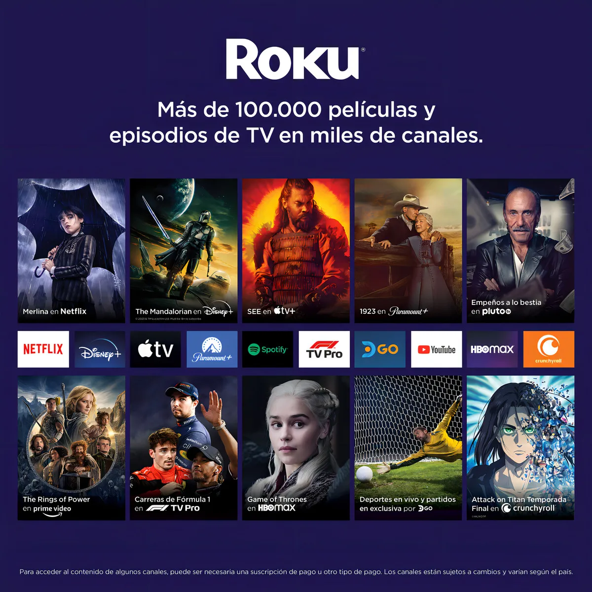 Ofrece resolución 4K Ultra HD con HDR, brindando imágenes más nítidas, colores vibrantes y mejor contraste. Incluye control remoto con comando de voz para buscar contenido de forma rápida y sencilla.