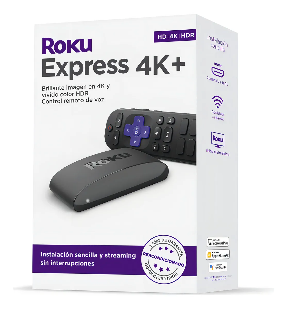 El Roku Express 4K+ es un dispositivo potente y fácil de usar que convierte cualquier televisor con puerto HDMI en un Smart TV con acceso a miles de aplicaciones.